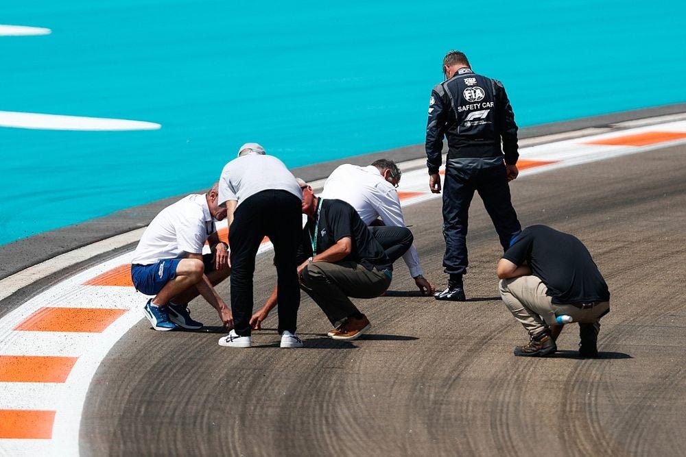 Some of the mistakes drivers were making after going off-line, even briefly, made it pretty clear what sort of trouble they'll have on Sunday trying to pass. If the DRS is powerful enough they might be able to get a drive by pass and regain the line before braking, otherwise it might be a mess. Even if they can regain the line before the braking zone, if they have picked up dust/marbles off-line (which they will) they will still be in sub-optimal grip territory. If we’re lucky that could just add some extra spice, increasing the challenge of maintaining the lead into and through the corner but not completely deterring drivers from making the attempt. The Miami International Autodrome is holding its first grand prix this weekend and the concrete barrier used at turn 14 has become a focal point of criticism after two crashes within 24 hours.